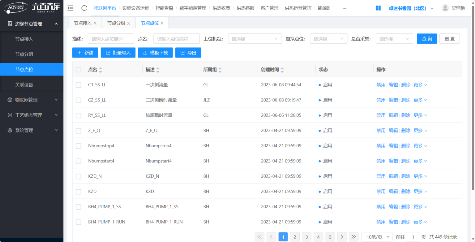 边缘节点管理:边缘节点(本质为边侧或接近设备侧的设备)目前包括两类设备工控机和物联网网关,通过物联网平台的边缘节点管理功能,可以快速完成数据的接入配置,打通物联网数据通讯。