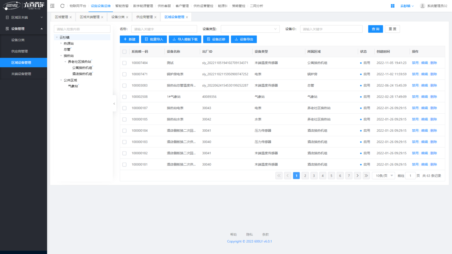 区域及末端管理:实现设备的物理位置的基础信息维护管理。