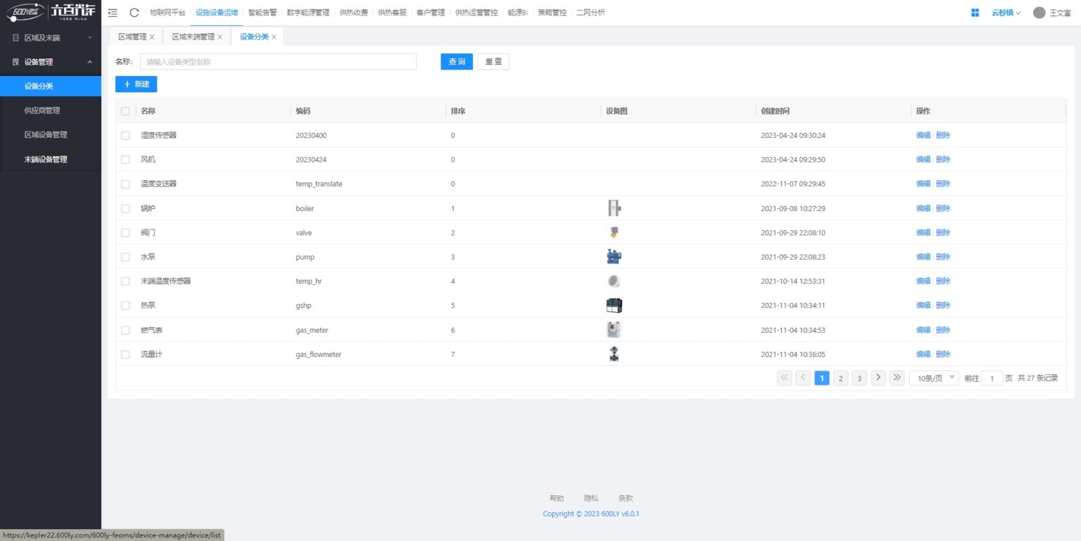 设备分类:提供智慧供热运行关联的所有设备分类,便于精准识别设备、定位设备。